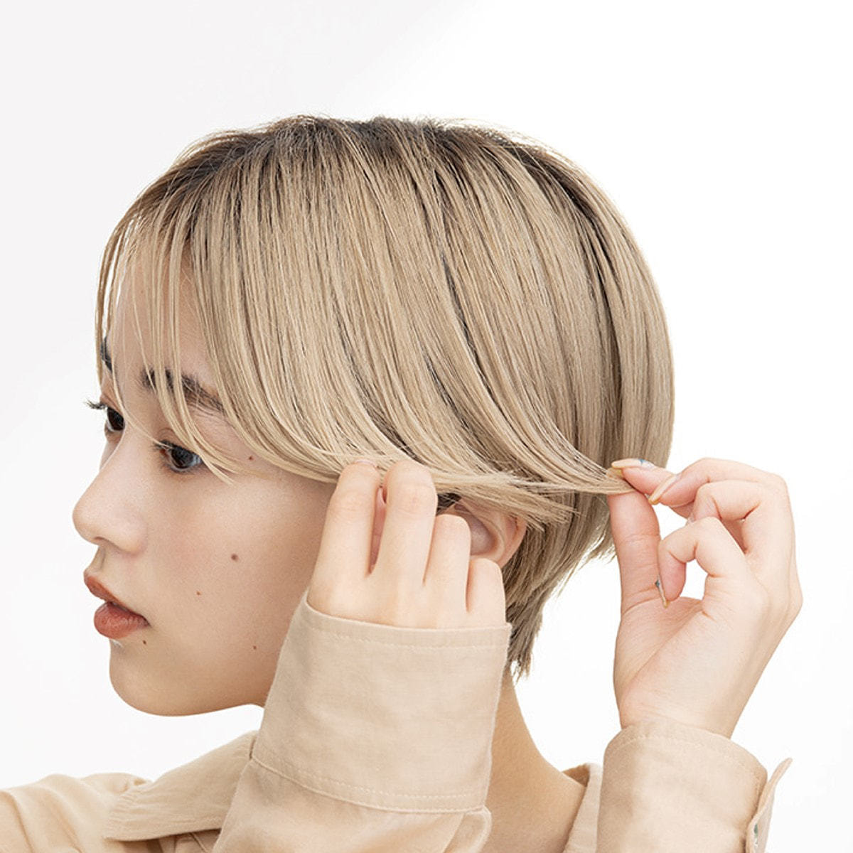 つくった束感・毛流れを一日中持続させます。